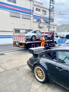 会社に修理車両 緊急搬入